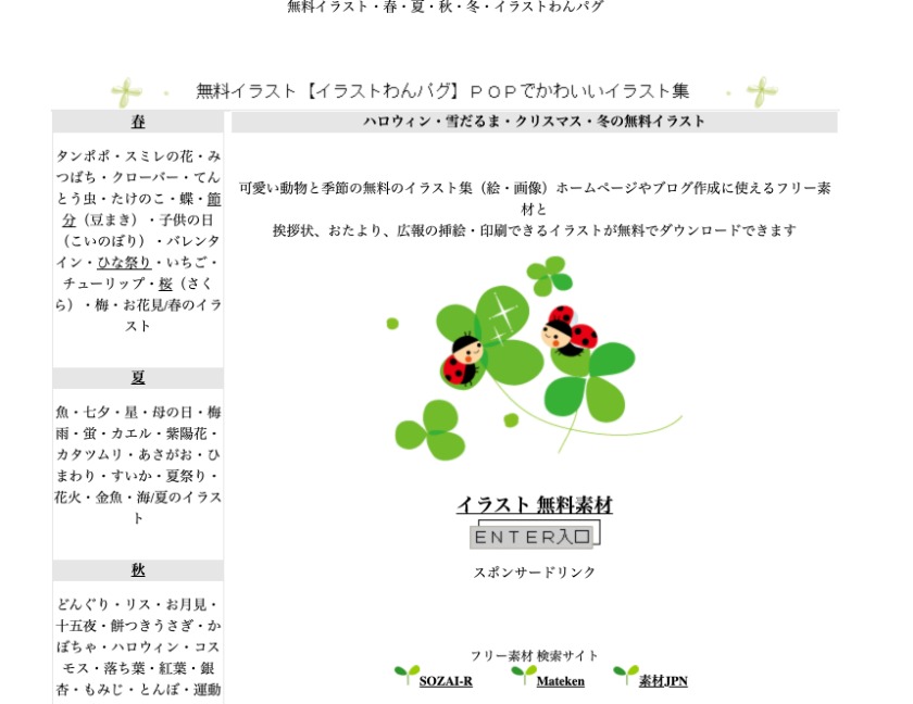 フリー素材大特集 14 無料イラスト 春夏秋冬 イラストわんパグ サンキyou図書館 Pcよろずマニュアル