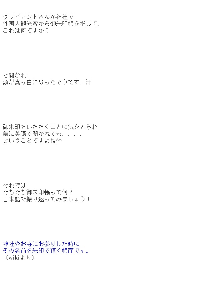 御朱印帳 英語で説明できますか 547 原田 佳枝 英語コーチ